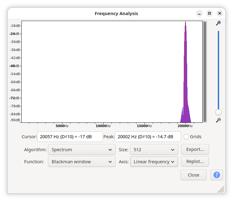 For the tone.wav audio file, you have options. You can download something from the Internet or you can generate the tone yourself. I used Audacity but anything similar will do. The important part is that you create a very high frequency sound with the amplitude as low as you can set it. That is, make the volume as low as possible.